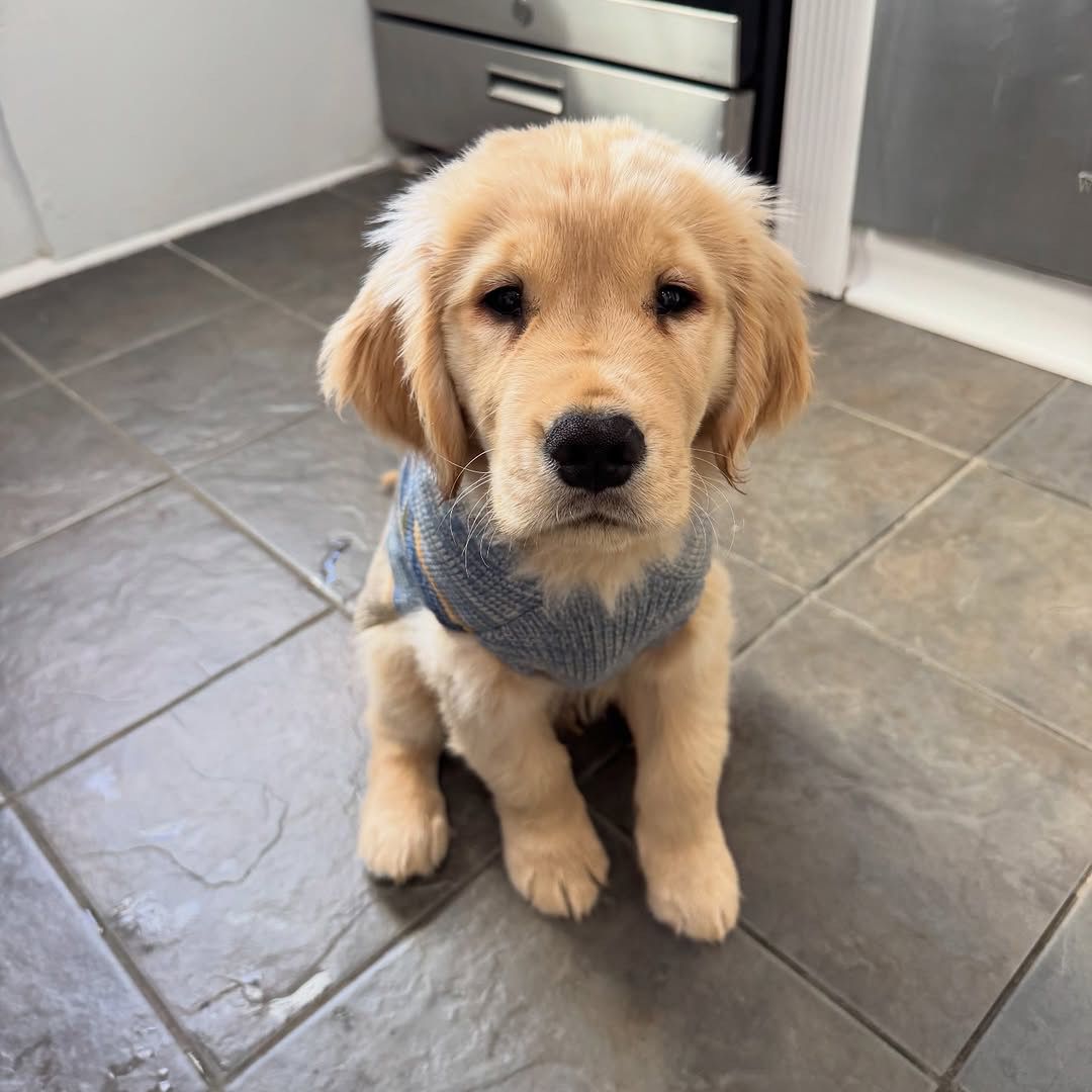 One of Teddy’s most charming features is his beautiful fluffy Golden Retriever coat, which gives him the classic adorable look this breed is known for. Like many purebred Golden Retrievers, he has a friendly nature, is easy to bond with, and enjoys human companionship.