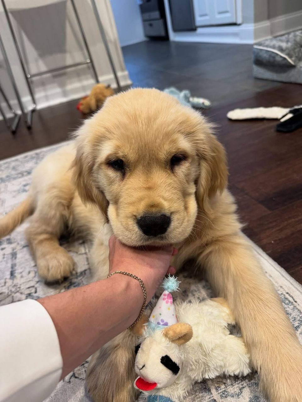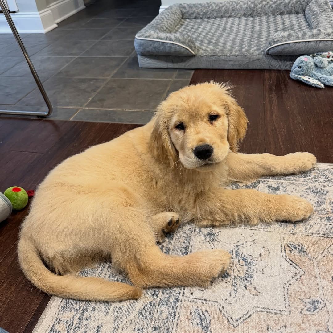 Teddy is a calm and affectionate Golden Retriever puppy who loves being around people. With his beautiful fluffy coat and sweet personality, he makes a perfect family companion and loyal Golden Retriever dog.